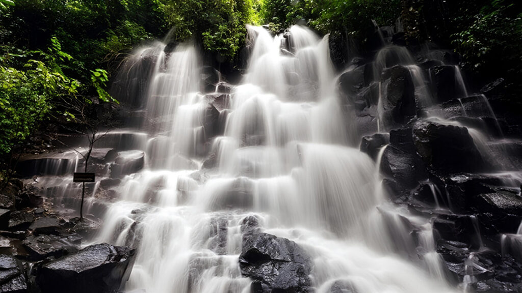 This unique multi-tiered waterfall is located just 15 minutes from Denpasar and features a sloping rock cascade rather than a vertical drop. Visitors can swim in the shallow pools or hike to a nearby sacred cave. The surrounding forest adds a serene, jungle-like atmosphere. It’s less crowded than other Bali waterfalls, making it ideal for peaceful exploration.