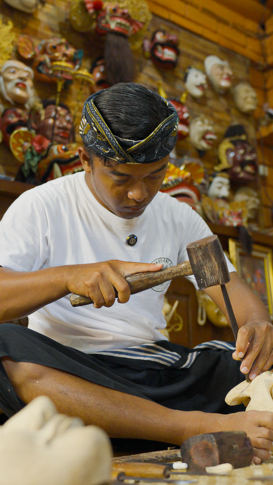 “My father told me before he passed,” Komang explains, pausing mid-stroke with his chisel. “That if pursued a path in notary, my skills might fade. If we let go of this mask-making legacy, we’ll only be remembered by name alone.”