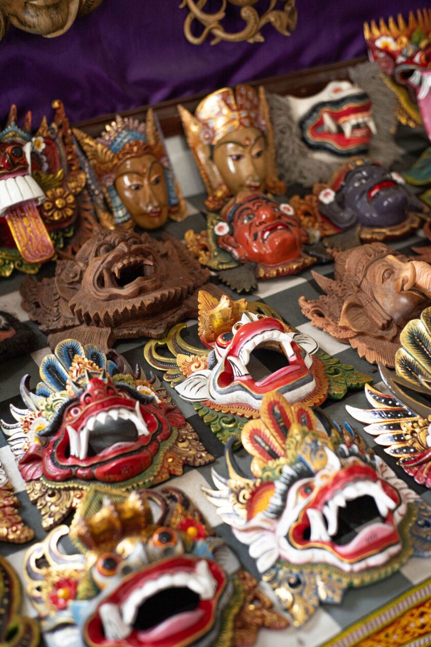 In Mas Village, masks are far more than decorative objects: they are vessels of spiritual power and storytellers of ancient mythology. Each mask carved here represents characters from classical Balinese dance-dramas like the Topeng and Barong performances, embodying deities, demons, heroes, and clowns from Hindu epics.
